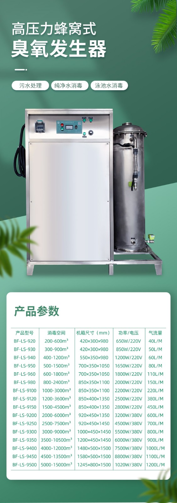 臭氧产量:400g/h