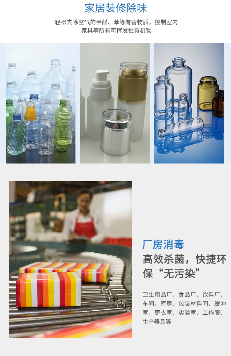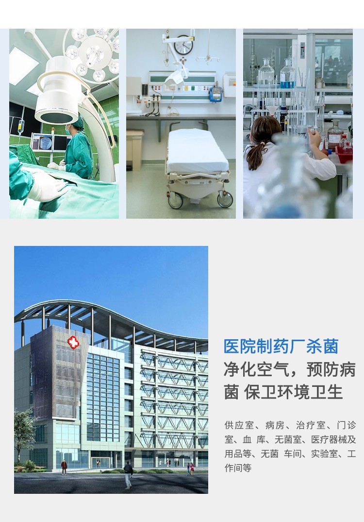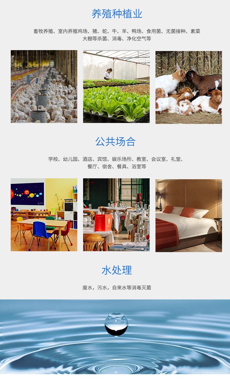 消毒范围:空间消毒或水处理
