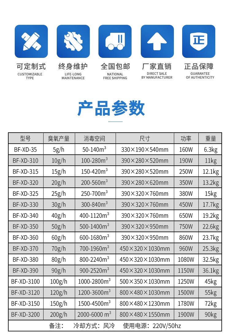 臭氧产量:20g/h